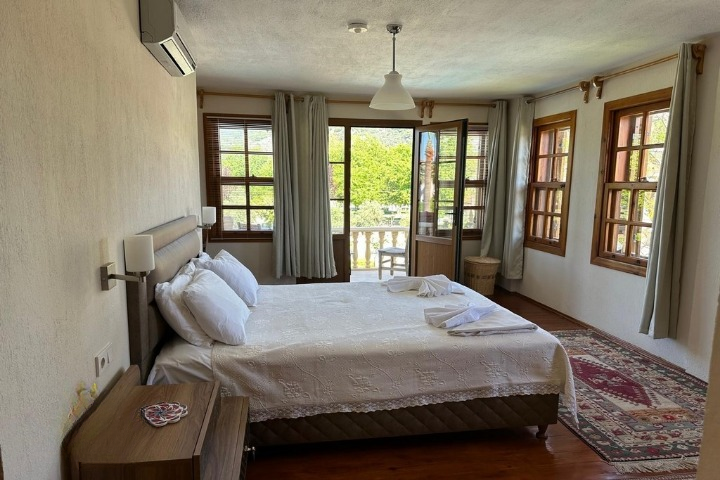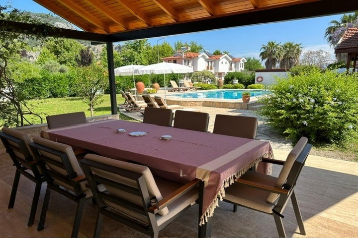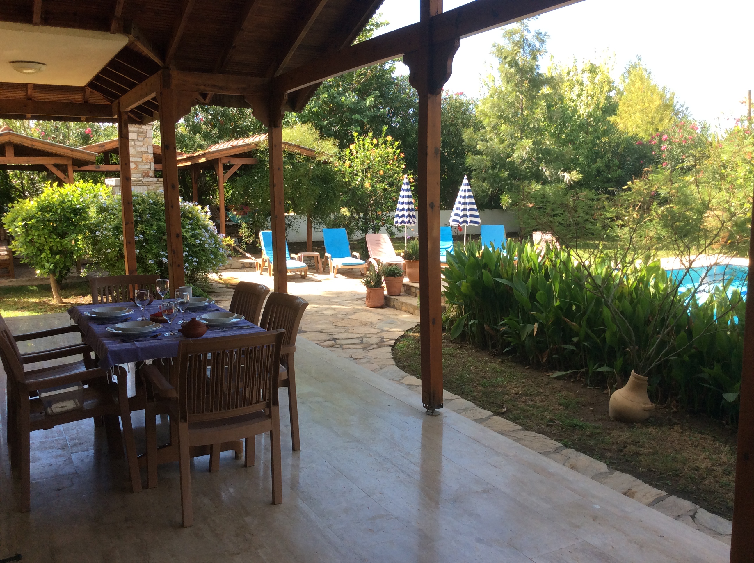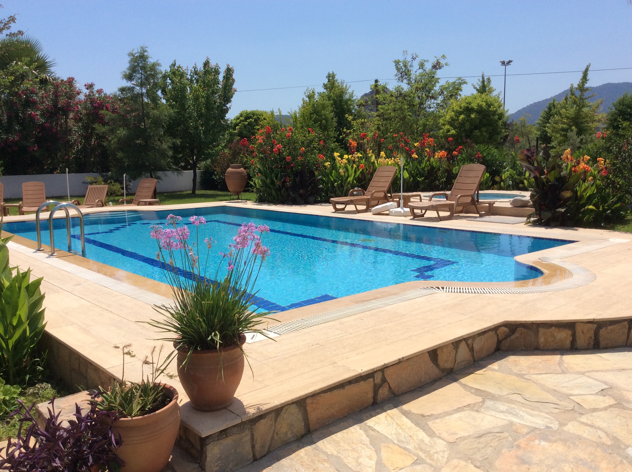 Villa Hatira is a gorgeous 3 bedroom 4 bathroom villa in a large garden with spacious terraces, a large private pool, jacuzzi, outdoor kitchen, wifi and mature gardens. It is ideally positioned opposite a park in the most desirable area of Maras, just 5 minutes’ walk from the centre of Dalyan with all shops, restaurants, bars and riverside walks within easy reach. Your nearest shop and bakery is just 3-4 minutes’ walk away.