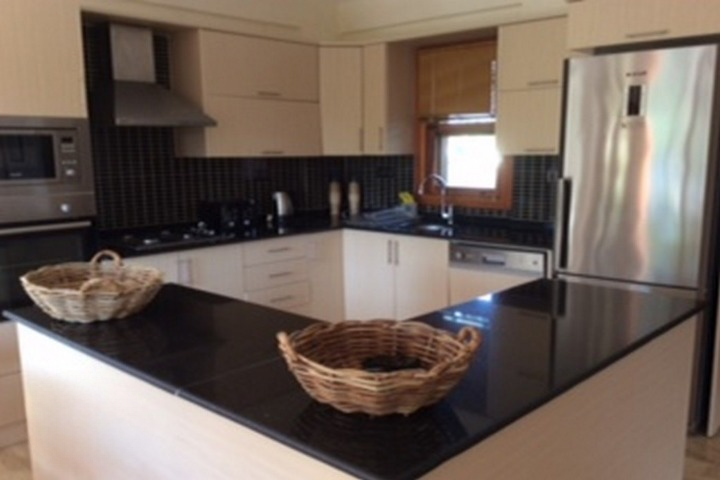 The open plan ground floor area is extremely comfortable and well appointed. It includes a unique Ottoman sunken seating area with massive camel bag cushions which are so relaxing and make a lovely chill out spot in the hot summer months. The quality bespoke kitchen is fully fitted with black granite worktops, tiled splash backs and an island. It is equipped with an electric oven, gas hob, microwave, fridge freezer, dishwasher, kettle, toaster, glassware, tableware, crockery and cutlery.